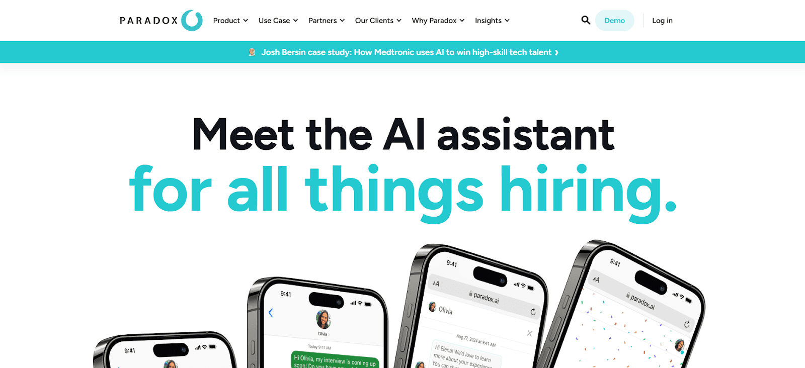 Conversational AI assistant that automates screening, scheduling, and engagement for high-volume hiring. Supports programmatic ads and integrates with ATS, ideal for retail and customer service roles.