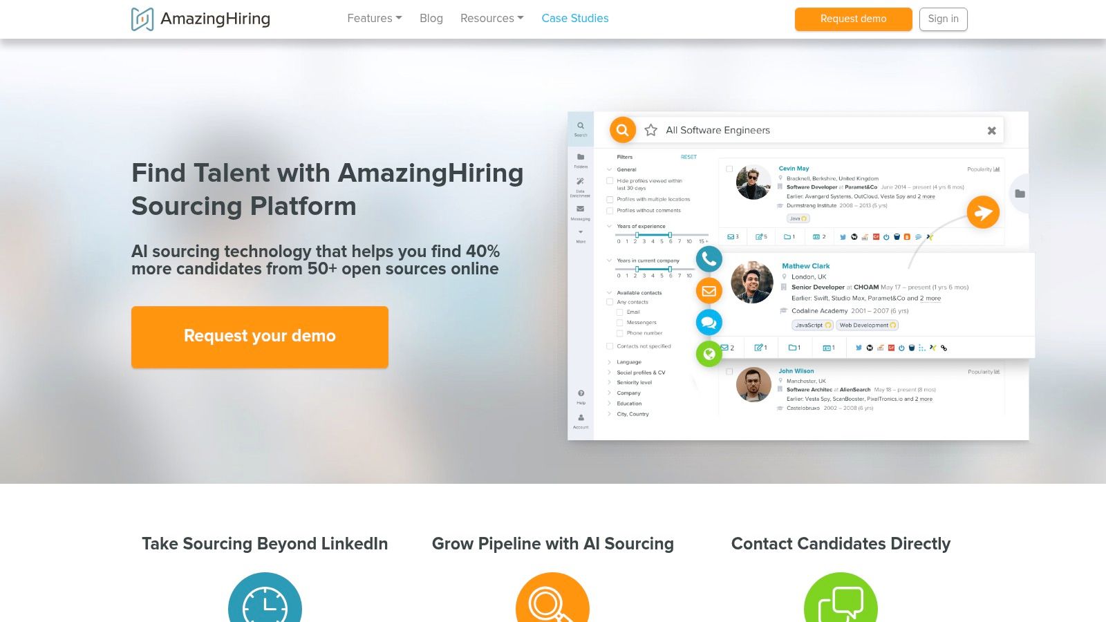- Best For: Technical recruiters and talent acquisition teams at tech companies who need to source highly specialized roles like software engineers and data scientists.