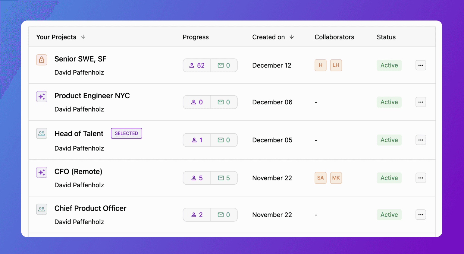 Growth plan users can now create unlimited projects. Organize candidates across as many roles and shortlists as needed, without any limitations.