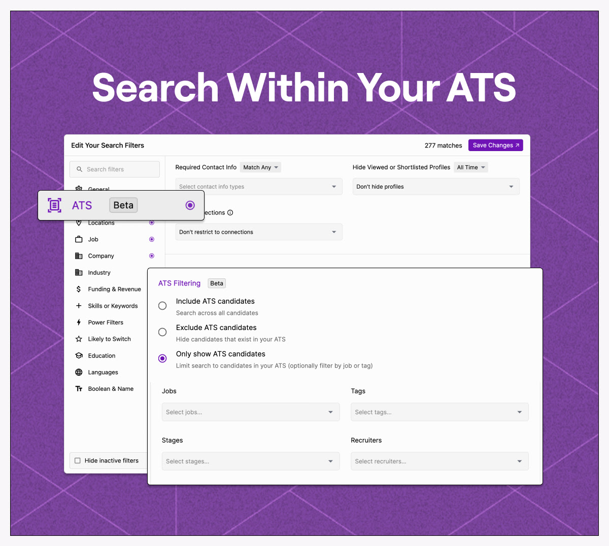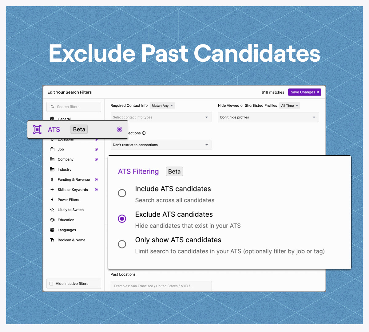 Use "Exclude ATS Candidates" to filter out anyone already in your ATS from your search.
