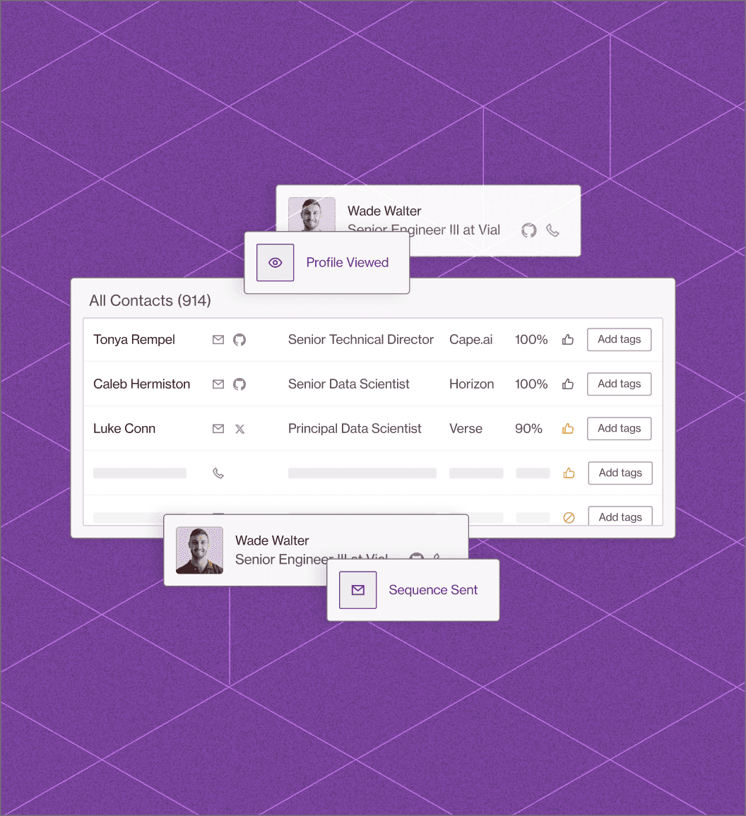 Bring together every profile you’ve viewed, messaged, or synced from your ATS in one place.