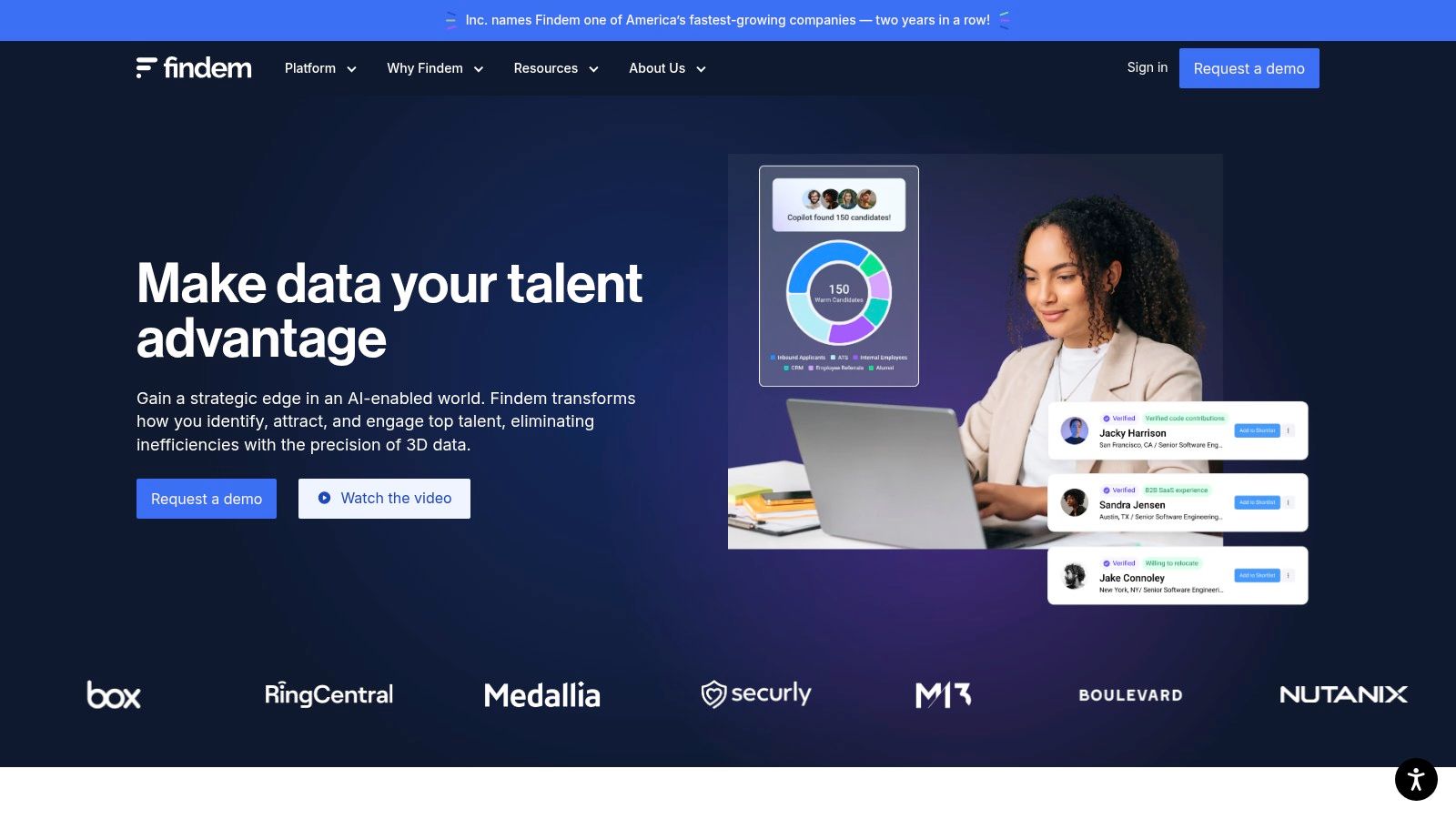 Findem is an AI-powered talent acquisition platform that goes beyond standard keyword matching. It leverages "3D data," a comprehensive model that maps a candidate’s entire career journey, including attributes, skills, and growth trajectories. This deep data analysis enables its AI Copilot to transform complex job requirements into a highly targeted shortlist of candidates with a single click.