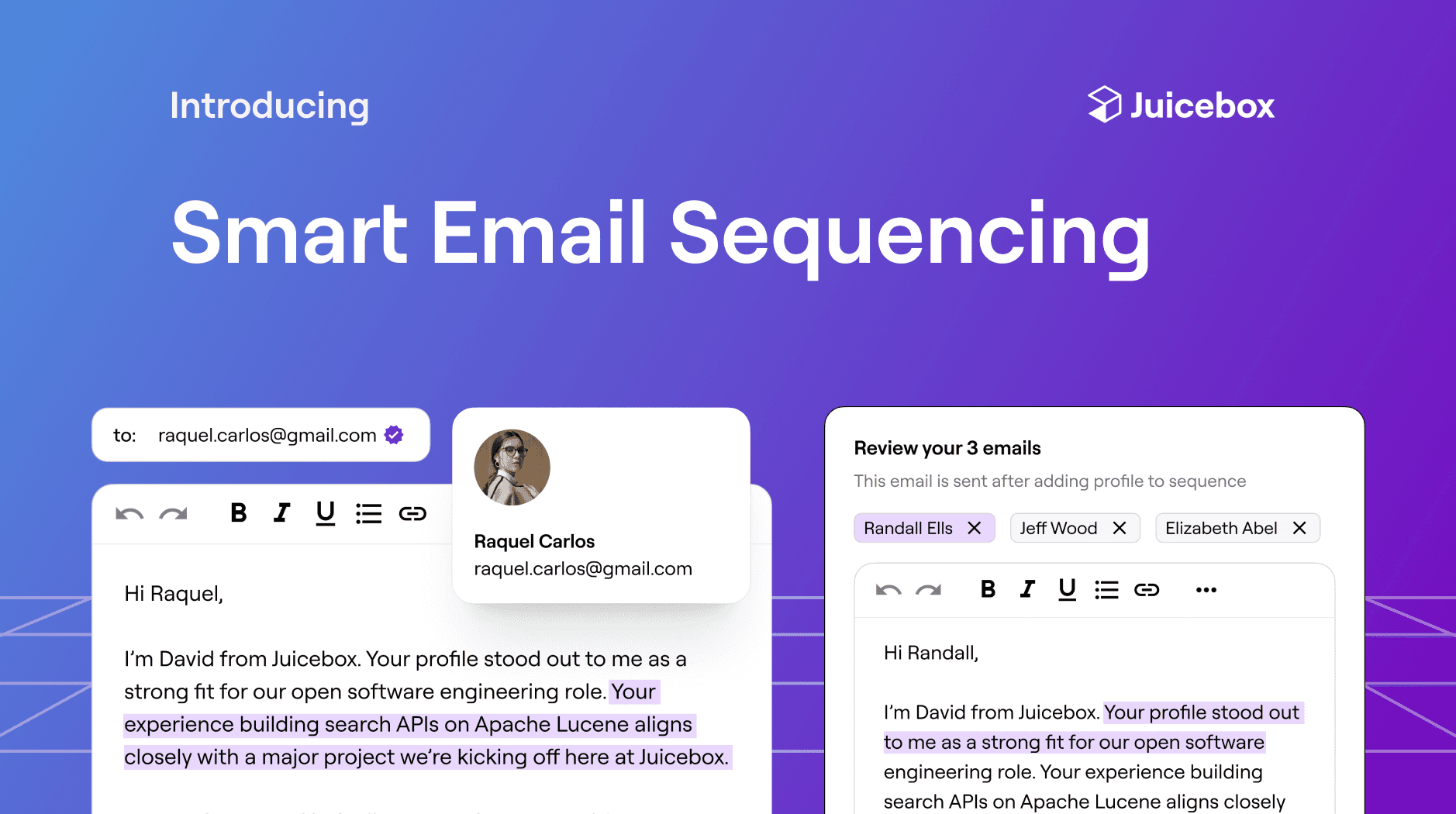 Maximizing response rates is top of mind for Juicebox users. Today, we’re introducing multi-step email sequencing to increase candidate engagement.