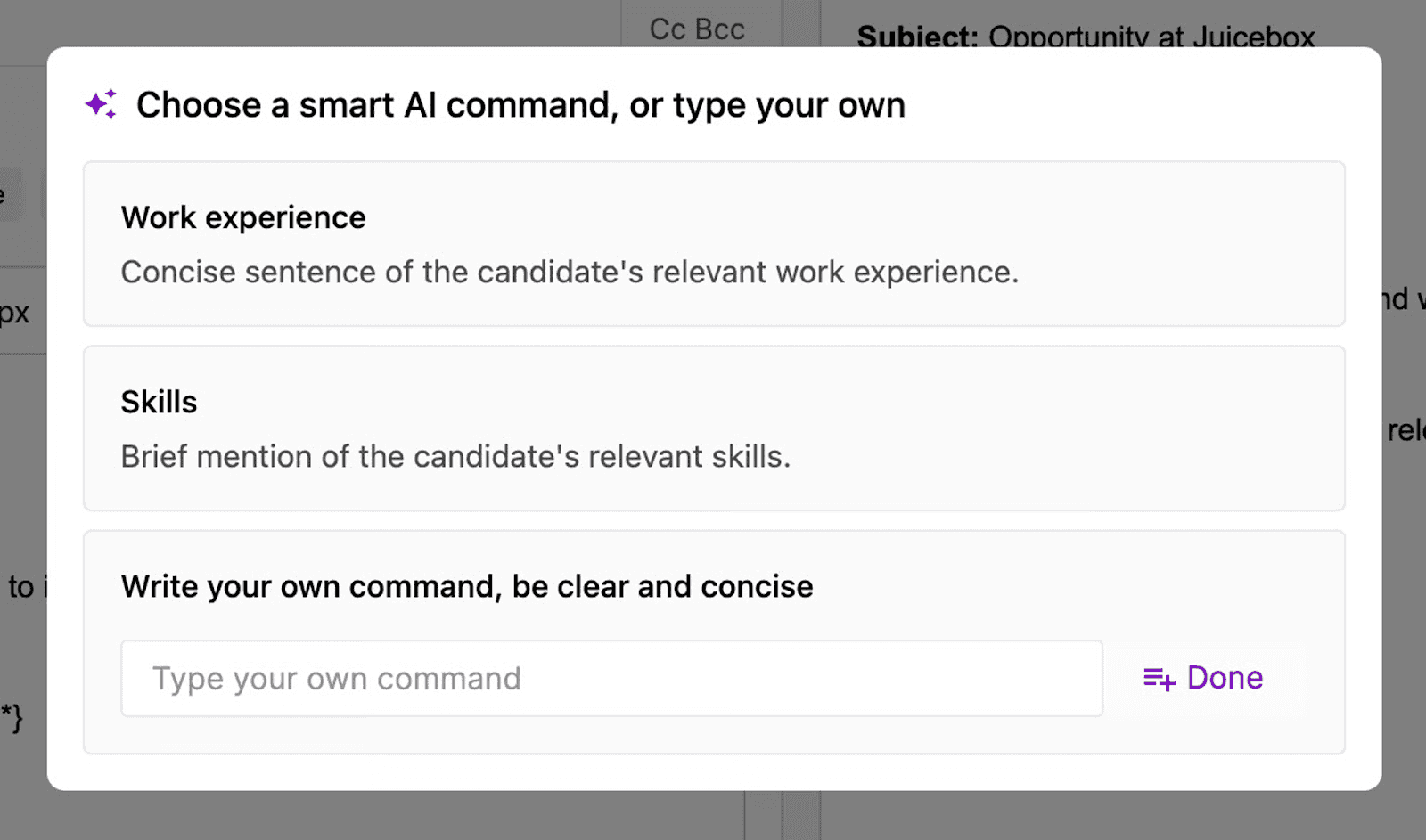 - Personalize messaging for each candidate based on the Smart AI Command