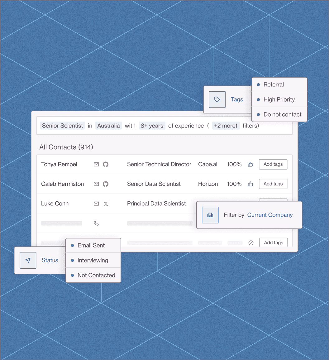 Use filters to surface the most relevant candidates in seconds. Everything stays updated automatically, so rediscovering great talent is effortless.